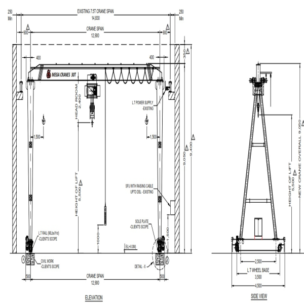 SINGLE GIRDER GANTRY CRANE (Unused condition) 30 Ton Capacity - TN