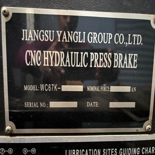 Yangli make hydraulic folding machine. 200 tonn , 4000mm bed length. Year of manufacture 2019.